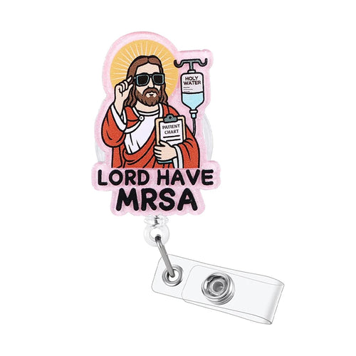Lord Have MRSA Funny Nurse Badge Reel, Cute Retractable ID Medical Badge Holder, Name Tag Pediatric Work Badge Buddy, Nurse Gift